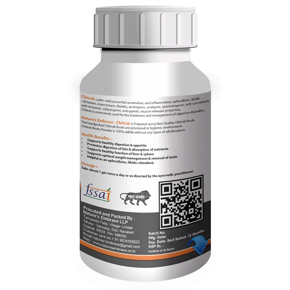 Nature’s Embrace – Chitrak is Prepared using Best Quality Chitrak Roots. The handpicked Chitrak Roots are processed in hygienic environment. Chitrak Roots Powder is 100% edible without any types of adulterations.