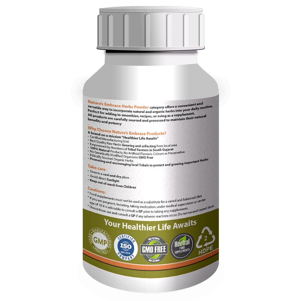 Nature’s Embrace Herbs Powder category offers a convenient and versatile way to incorporate natural and organic herbs into your daily routine. Perfect for adding to smoothies, recipes, or using as a supplement, All products are carefully sound and processed to maintain their natural benefits and potency.