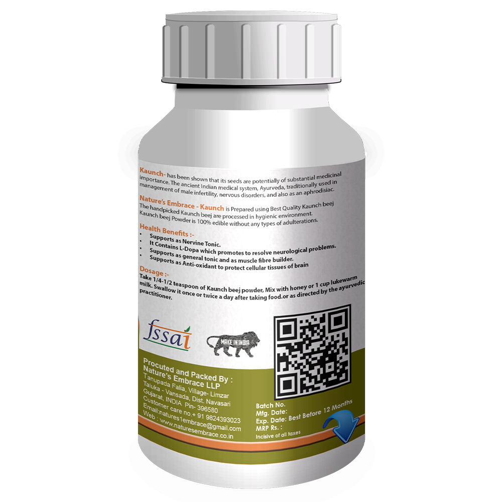 Nature’s Embrace – Kaunch is Prepared using Best Quality Kaunch beej. The handpicked Kaunch beej are processed in hygienic environment. Kaunch beej Powder is 100% edible without any types of adulterations.