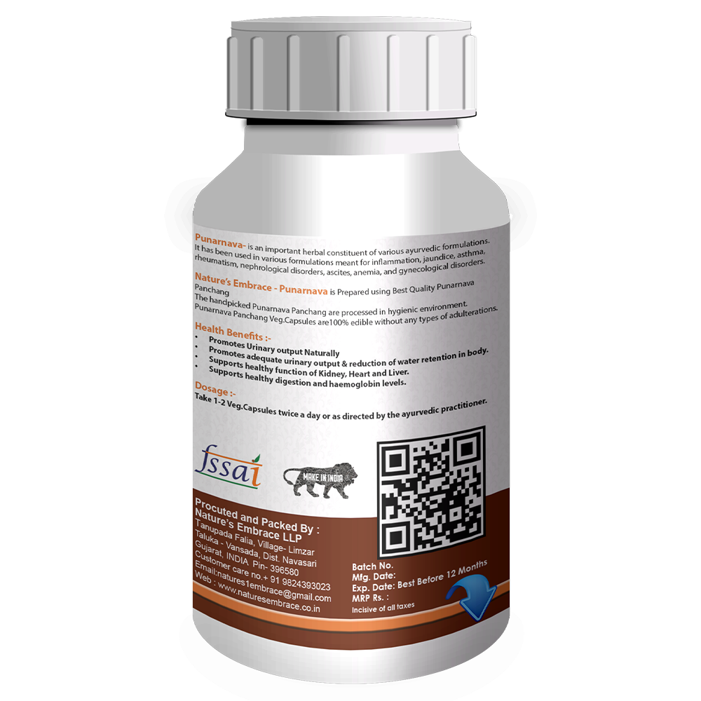 Nature’s Embrace – Punarnava is Prepared using Best Quality Punarnava Panchang, The handpicked Punarnava Panchang are processed in hygienic environment, Punarnava Panchang Vegetable capsules are 100% edible without any types of adulterations.