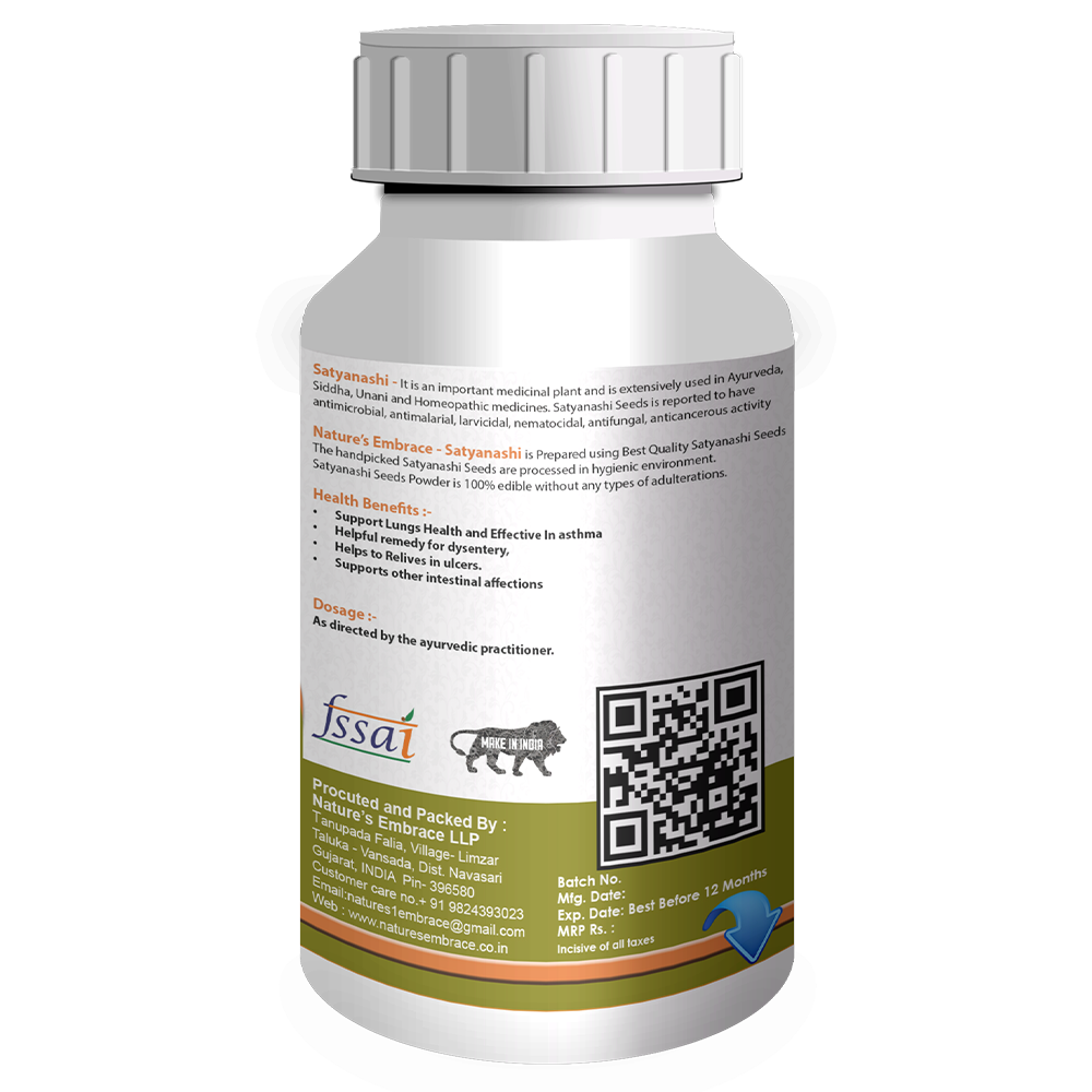 Nature’s Embrace – Satyanashi is Prepared using Best Quality Satyanashi Seeds.The handpicked Satyanashi Seeds are processed in hygienic environment.Seeds are processed in hygienic environment. Satyanashi Seeds Powder is 100% edible without any types of adulterations.